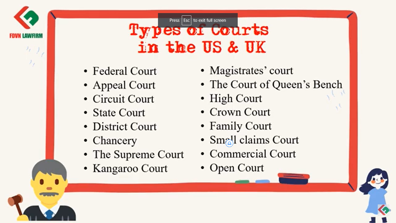 Link on Youtube: ENGLISH VOCABULARY ON THE TOPIC OF TYPES OF COURTS IN THE US & UK