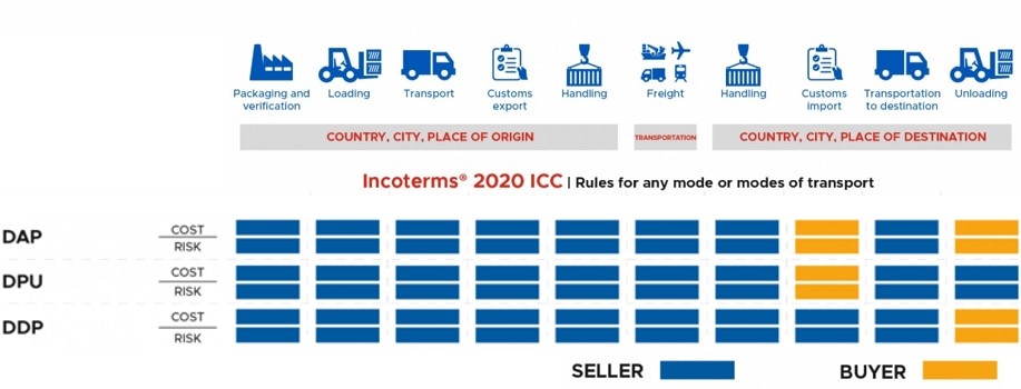 Therefore, in Incoterms® 2010, DAT is presented before DAP, but in Incoterms® 2020, DPU (replacing DAT) is presented after DAP because the seller's obligation under DPU is higher than that of DAP.