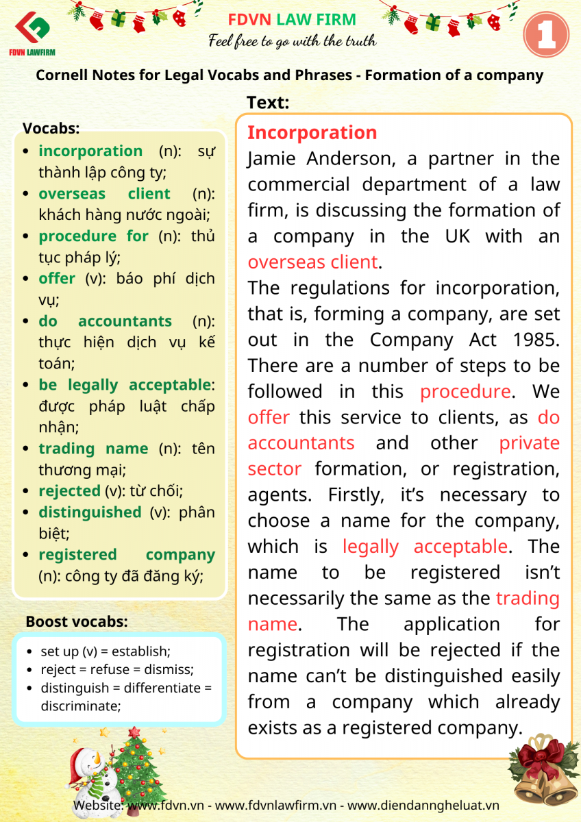 Link PDF: Cornell Notes for Legal Vocabs and Phrases - Part 13: Formation of a company