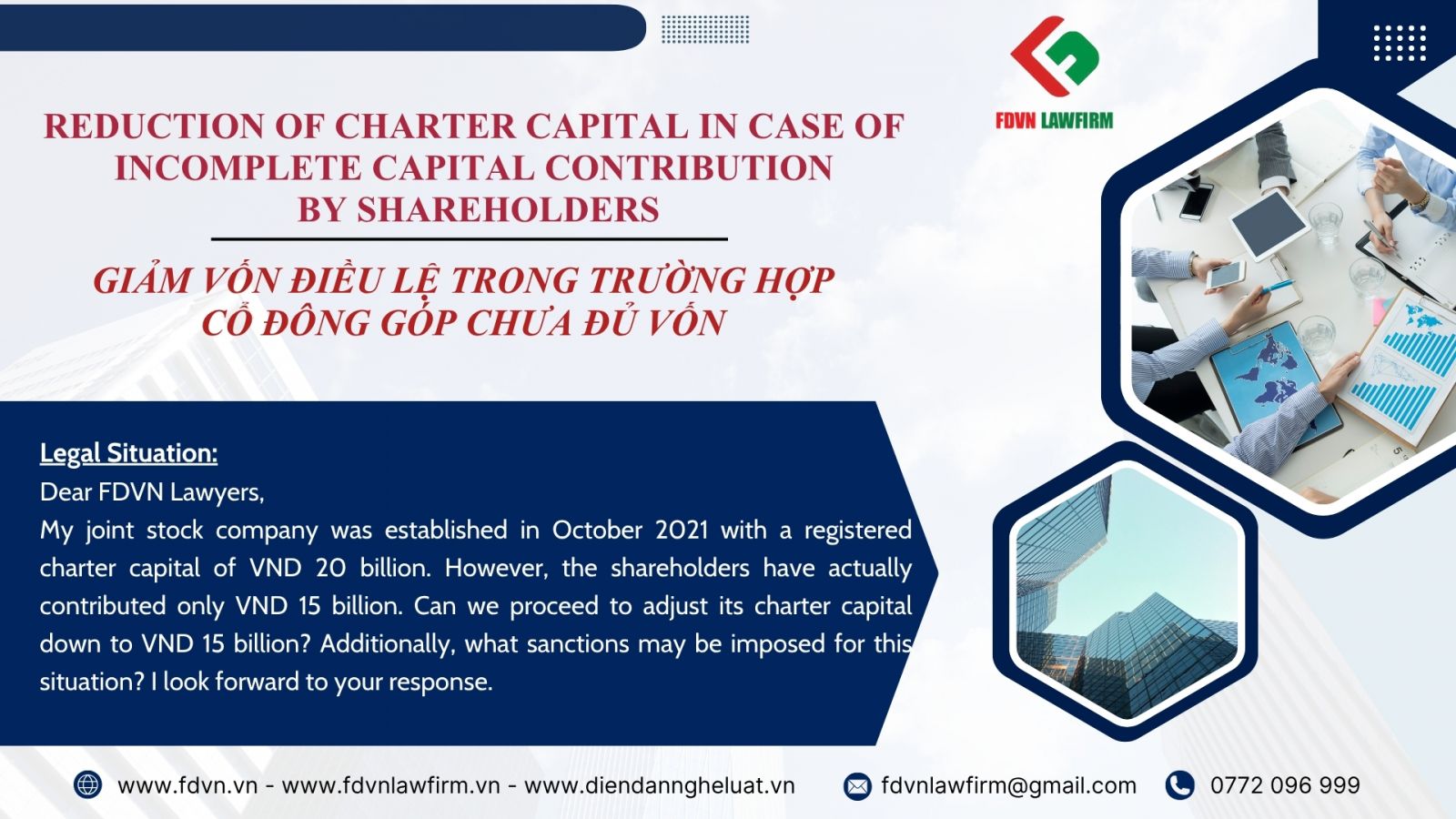 My joint stock company was established in October 2021 with a registered charter capital of VND 20 billion. However, the shareholders have actually contributed only VND 15 billion. Can we proceed to adjust its charter capital down to VND 15 billion? Additionally, what sanctions may be imposed for this situation? I look forward to your response.