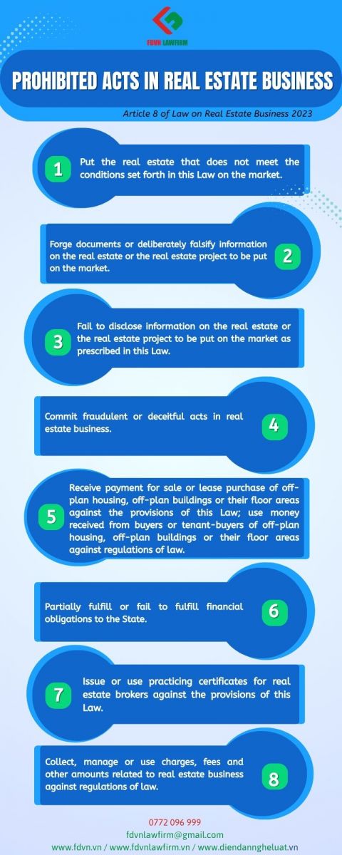INFOGRAPHIC CÁC HÀNH VI BỊ NGHIÊM CẤM TRONG KINH DOANH BẤT ĐỘNG SẢN / INFOGRPAHIC PROHIBITED ACTS IN REAL ESTATE BUSINESS