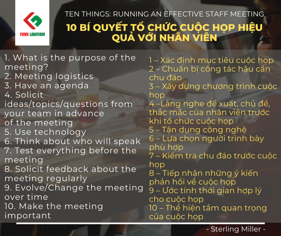 I have run a lot of meetings in my day (and I have also attended a lot of meetings). Over the years, I learned a few things that help make for an informative and interesting staff meeting (as well as some things that make for uninformative and dull meetings). This edition of “Ten Things” will set out some ideas to help you run a great staff meeting (and these ideas will work for small group meetings as well):
