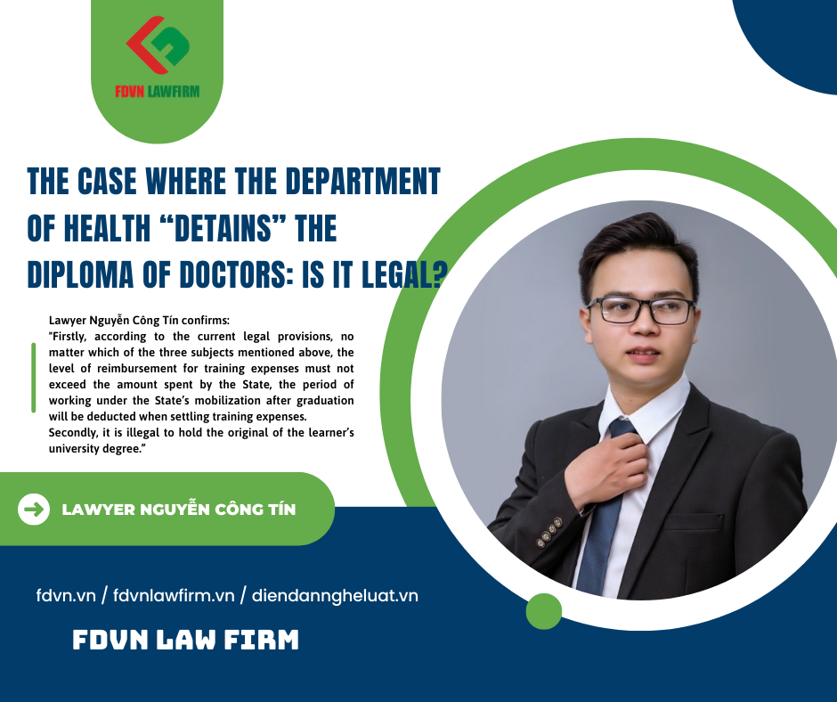 Regarding the case the Department of Health of Quang Ngai kept the Diploma of doctors so that the doctors must return to their hometowns to serve. Lawyer Nguyễn Công Tín – FDVN Partnership Law Firm (Da Nang) provides legal opinions on reimbursing for training expenses (if any) and returning the university degree to the persons sent by the state agency to study.